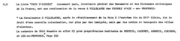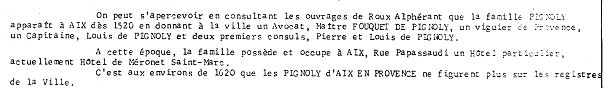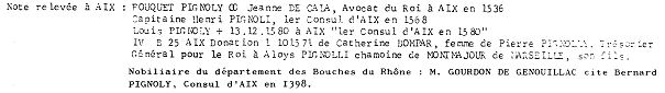 | Passionné de généalogie, en 1972, Luc Antonini se met à la recherche de ses ascendants du côté de sa mère, Marinette Tell. Il va trouver son arrière-grand-mère, Rosalie Pignoly et là sa passion va l'emmener beaucoup plus loin. Ses investigations dans tous les documents et ouvrages qu'il pourra exploiter lui feront découvrir des Pignoly en 1520 à Aix-en-Provence. Ses sources: les archives municipales de Villelaure, Pertuis, Ansouis, La Tour d'Aigues, La Roque d'Anthéron,.... les archives départementales d'Avignon les registres paroissiaux, en compagnie de l'abbé Suau, curé de Villelaure et bien sûr les membres de la famille qu'il ne cessera jamais de remercier. |