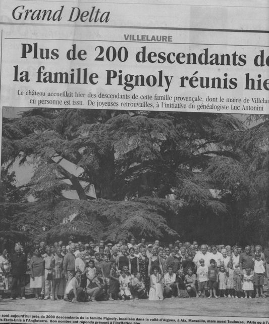 2009 les branches ont poussé comme celles du grand cèdre sous lequel étaient réunis il va y avoir 10 ans les descendants de Pignoly Antoine et Arnaud Arlap! Et des Pignoly, il y en a toujours à Villelaure! et il y a aussi des descendants des demoiselles Pignoly ! L'histoire continue.... Merci Luc! |